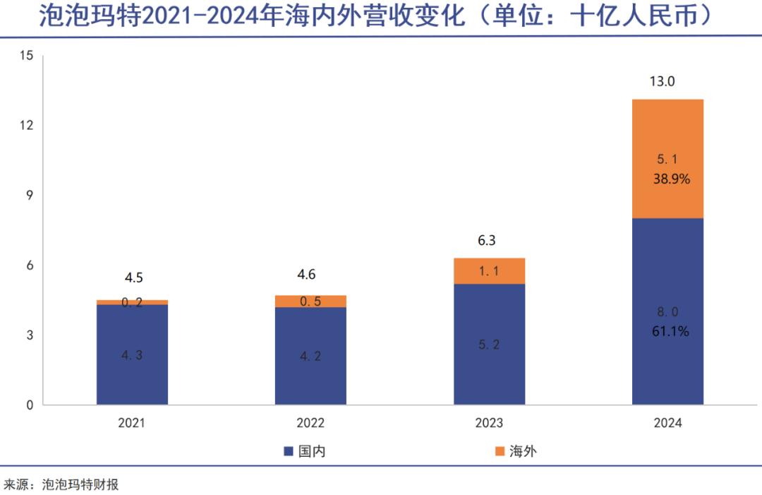 类似的案例还有很多。乐高大部分收入来自全球市场,可称之为如今最成功的国际化潮玩企业。2020-2024年的复合增速接近15%;中国的52TOYS在2017年出海,五年时间海外收入已经从3500万元涨到1.47亿元,年复合增速超过100%;名创优品等企业也同样通过潮玩产品,在全球市场打开了空间。