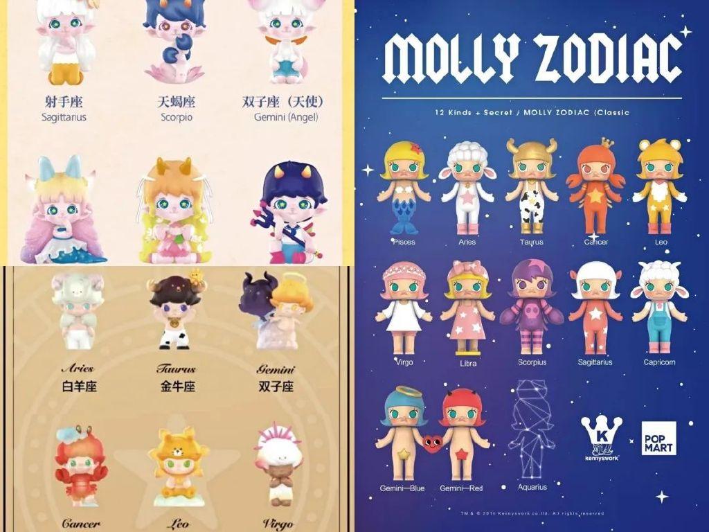 被大众所熟知的那个“潮玩”,是2016年之后出现的。日本品牌Sonny Angel通过盲盒销售形式,为潮玩后续的爆火奠定了基础。泡泡玛特沿用这一形式,与香港设计师Kenny合作推出了Molly星座系列,凭借独特的形象设计、独特的文化内涵,以及盲盒模式的工业化运作,正式推动潮玩破圈成为了一种大众消费品。