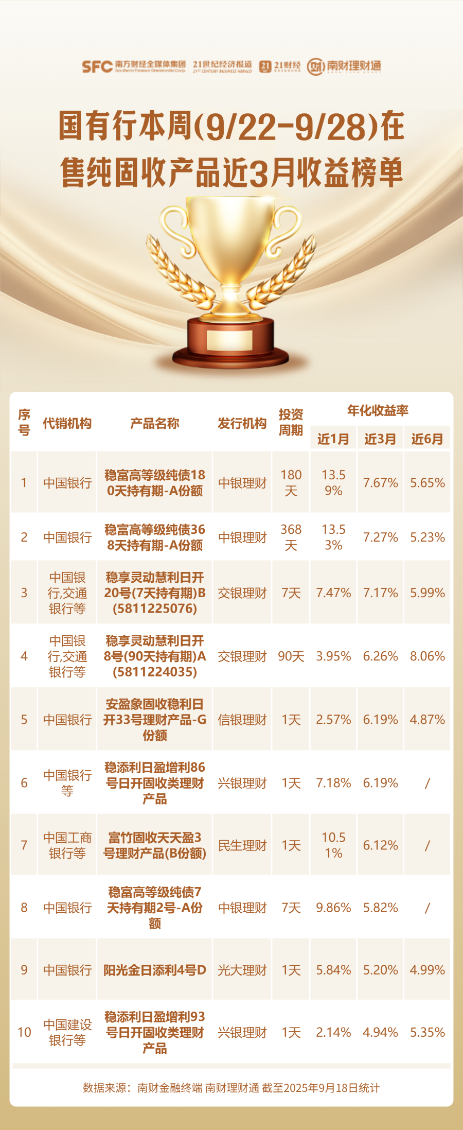 需要特别提醒的是: 本榜单对理财产品“在售”状态的判断基于其投资周期推算。但实际情况中,部分产品可能因额度售罄,或银行针对不同客户展示的产品清单存在差异而无法购买。因此,建议投资者以代销银行APP的实际展示为准。
