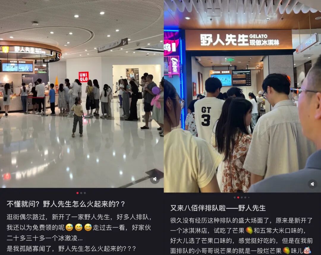 这或许便解释了,为何野人先生门店前总有这么多人。一位小红书网友曾表示,多数人不是在排队点单,而是在等餐,“即便不用排队,从点餐到拿吃上冰淇淋也要等40分钟”。