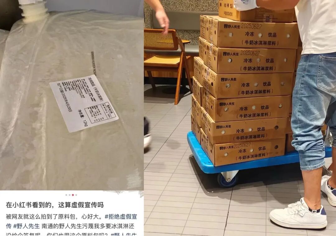 近日有消费者指出,野人先生使用隔夜奶浆制作冰淇淋,实际售卖的并非“现制”,而是从后厨直接取出冷冻产品售卖。据媒体实地调查的结果,这种牛奶浆料包的保质期长达半年。