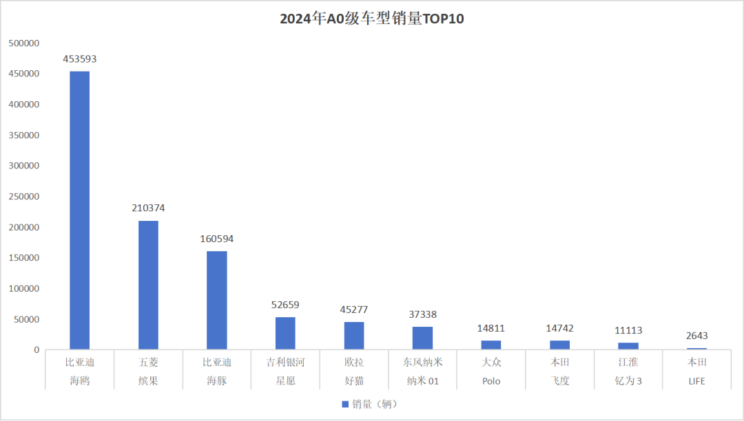 2024年,比亚迪推出的海鸥,销量又创新高,卖出了453593辆,占据小型车市场近45%的份额。