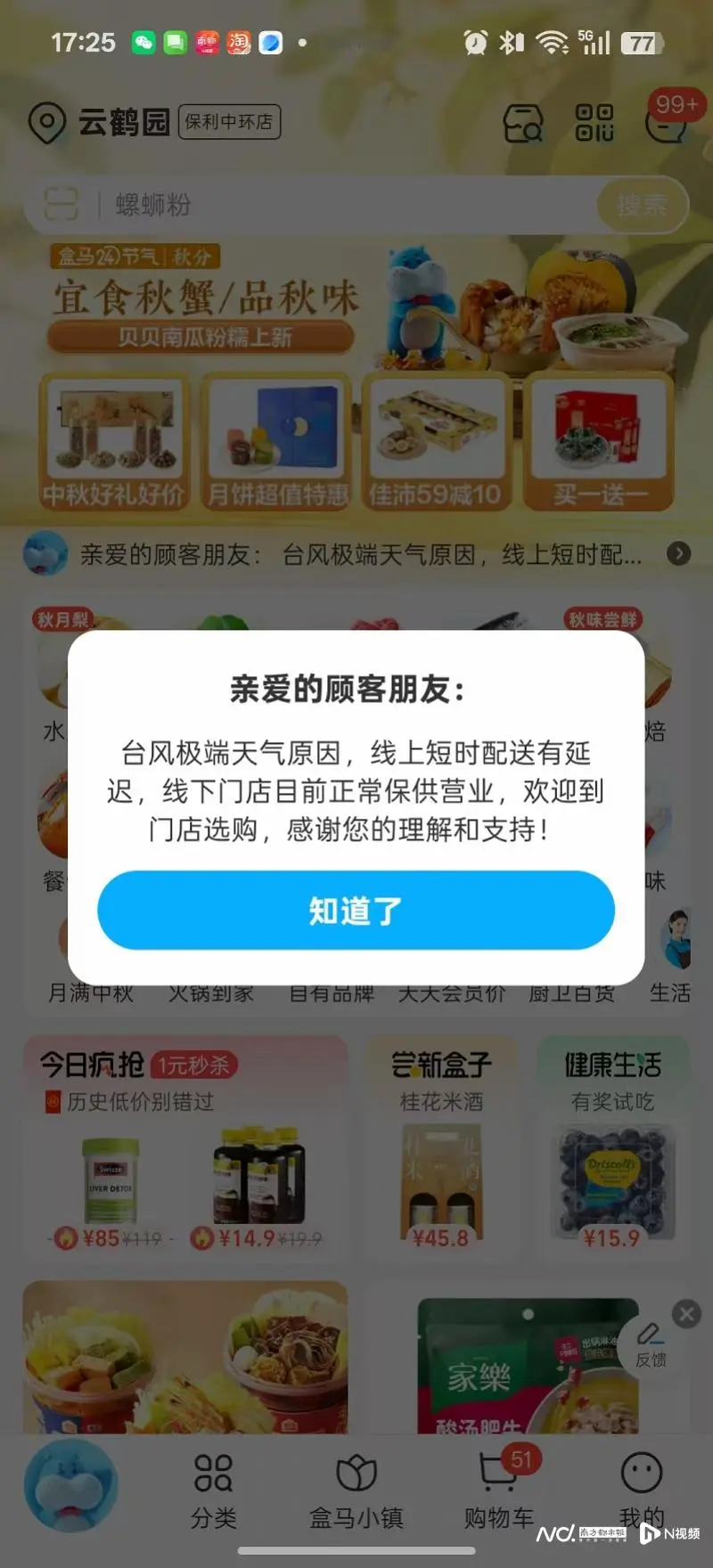 盒马方面回应南都记者称,将根据属地政策要求,对配送服务和范围进行及时调整:珠海、中山、东莞、佛山、深圳、广州南沙区:9月23日计划陆续实施“五停”,其间按要求停工停业。其他所有门店也按应急预案执行,明天9月24日晚将根据天气变化计划提前结束营业,保障一线人员安全。