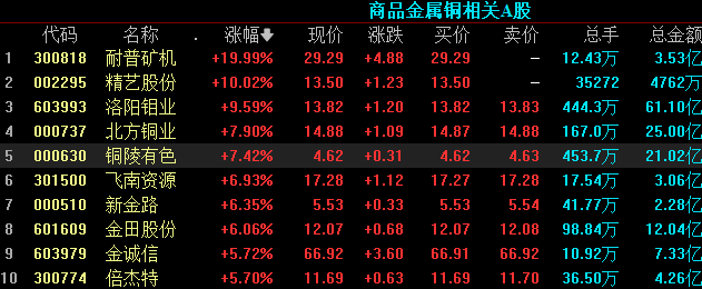 那么相关的公司就会出来,受消息刺激,金属铜方向大涨。