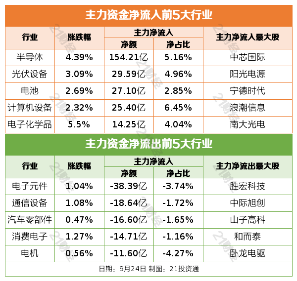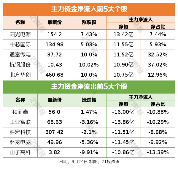 9月24日,市场低开高走,创业板指盘中再创3年多新高,科创50指数一度涨近5%。截至收盘,沪指涨0.83%,深成指涨1.80%,创业板指涨2.28%。沪深两市成交额2.33万亿,较上一个交易日缩量1676亿。全市场超4400只个股上涨,下跌家数不足900家。