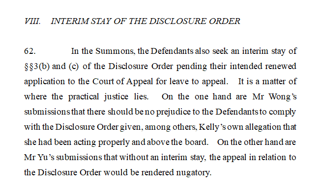 值得注意的是,判决同时批准暂缓执行“披露令”,即暂不要求被告披露汇丰账户的最新余额及资产流向等信息,直至其向上诉庭提出的上诉许可申请有结果,或法院另有指令。