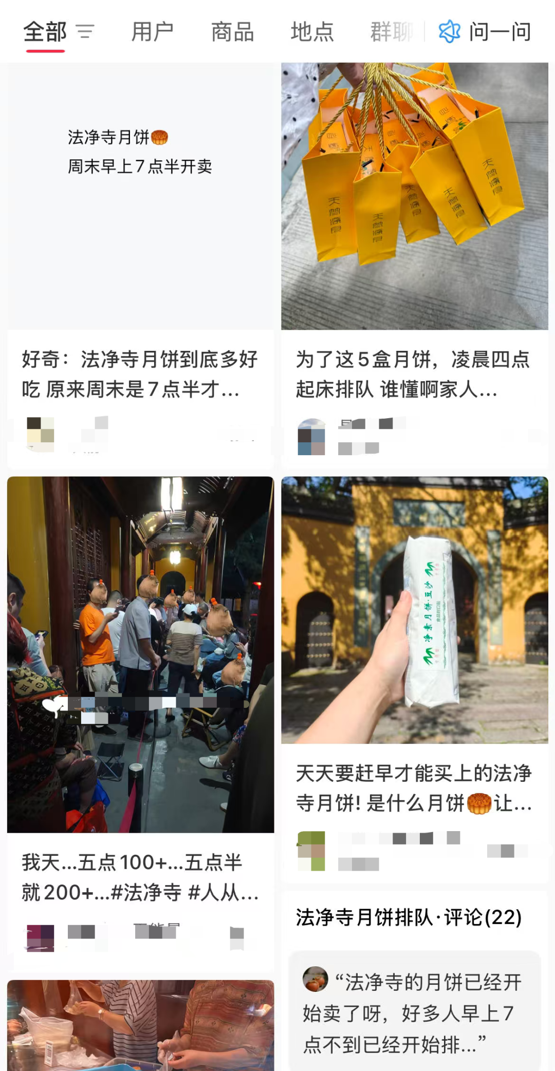 小红书上关于法净寺月饼排队的帖子。