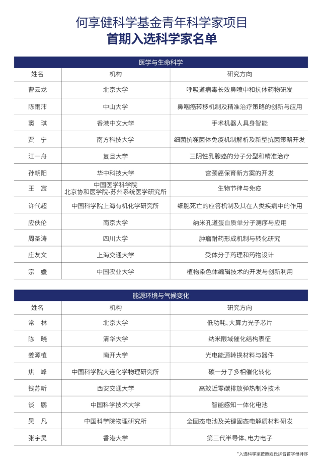 原标题:何享健青年科学家首期项目资助名单揭晓!这20人入选