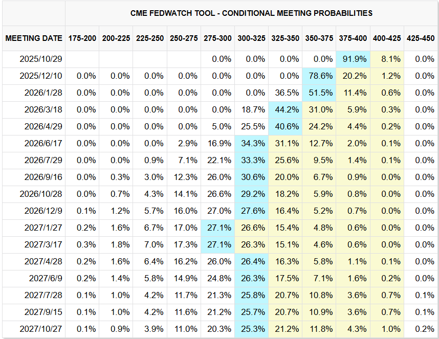 ▍表3:9月降息后市场预期美联储年内仍有两次降息