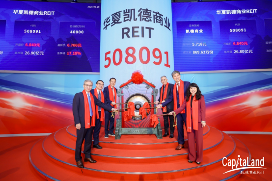 2025年9月29日,在即将迎来中新建交35周年之际,由总部位于新加坡的凯德投资发起的首单外资消费REITs——华夏凯德商业REIT(基金代码:508091)在上海证券交易所成功上市。这是中国第75单公募REITs,也是中国公募REITs市场国际化、多元化、专业化发展的标杆案例。