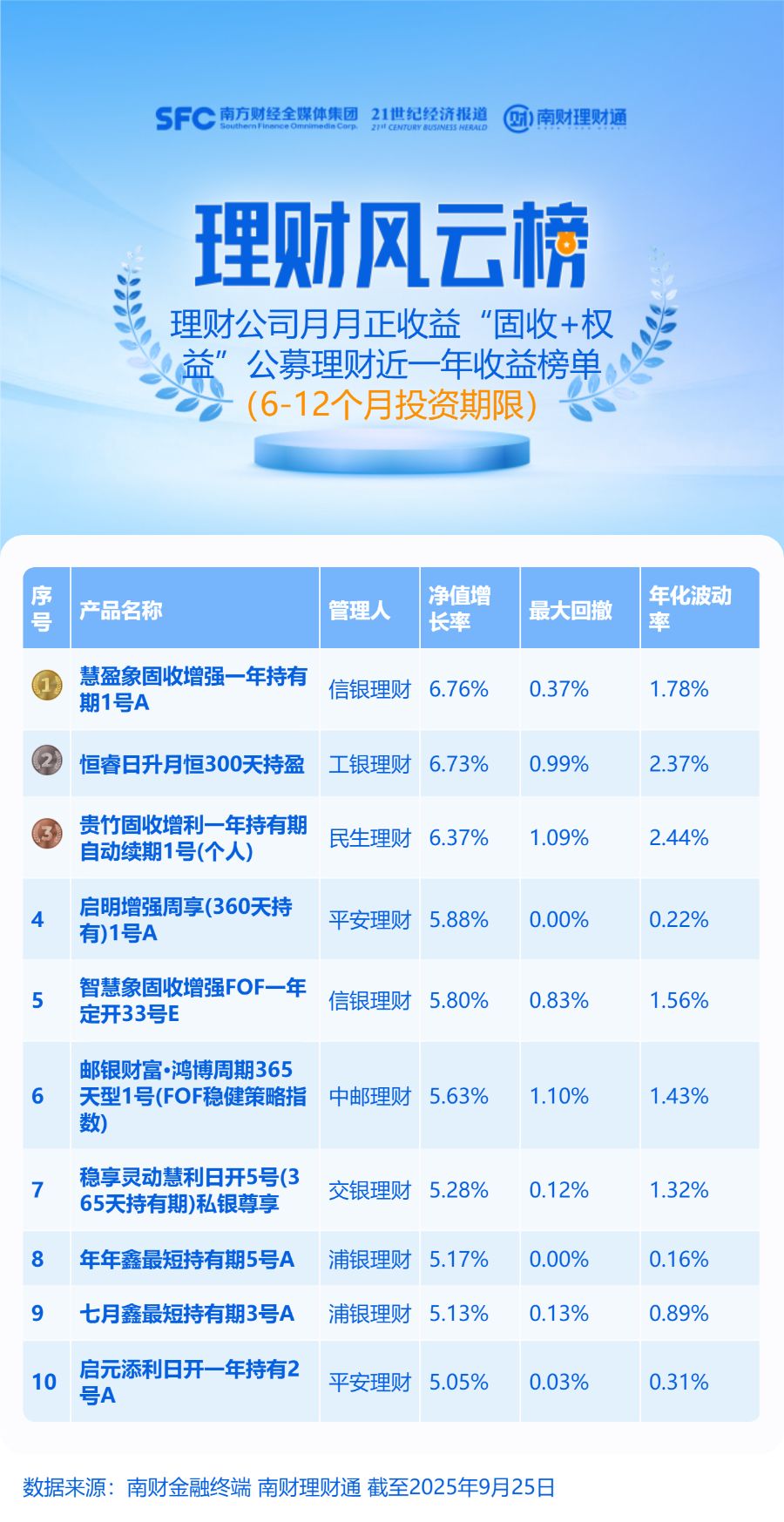 产品统计范围为理财公司6—12个月期限的“固收+权益”理财公募产品,截至2025年9月25日,统计区间为近一年。