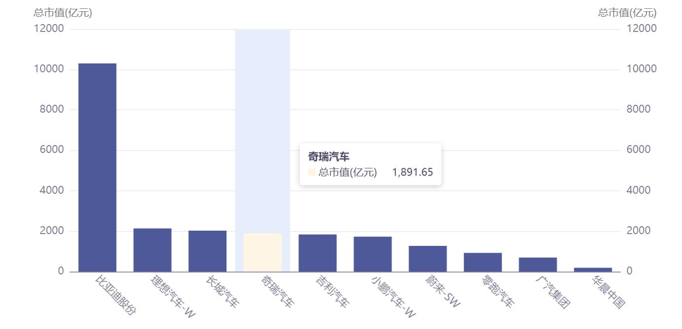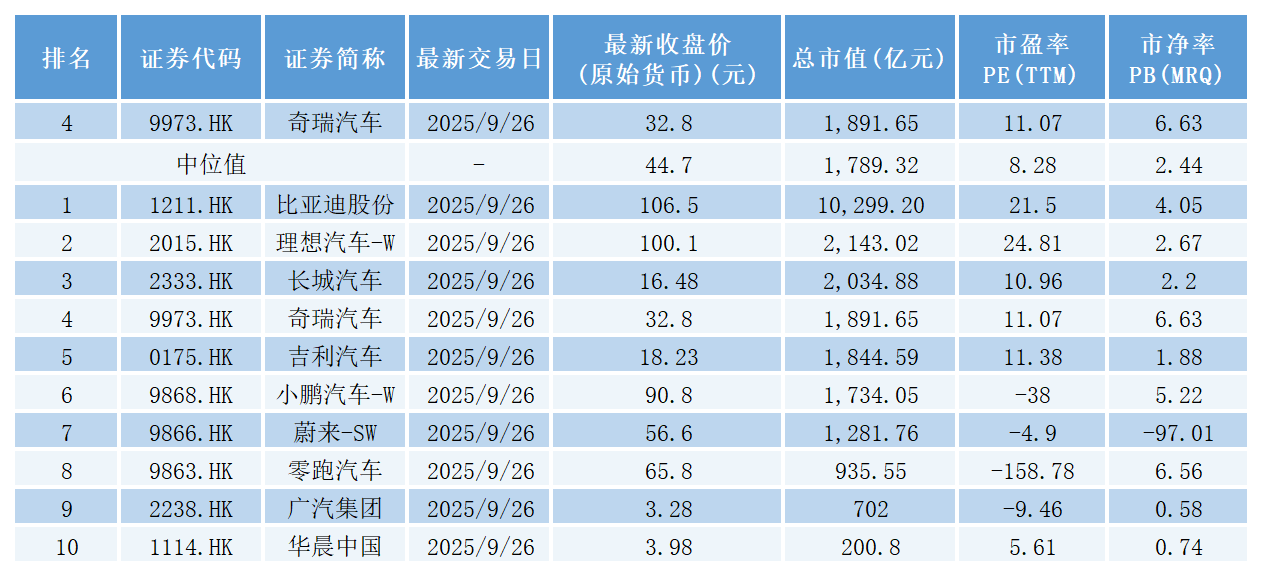 此次上市,标志着奇瑞汽车迈入了国际资本市场的新阶段。截至9月26日收盘,公司最新市值1891亿港元,超越吉利汽车,位居比亚迪、理想汽车、长城汽车之后。
