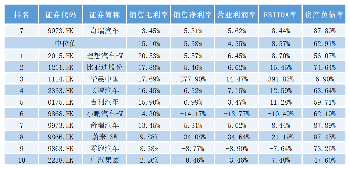 销售毛利率方面,2024年,比亚迪达到17.88%,吉利汽车15.90%,奇瑞汽车13.45%,在港股十大车企中,优势并不明显。