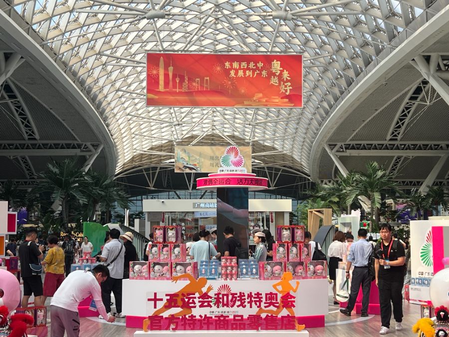 作为首次由粤港澳三地联合承办的国家级体育盛会,十五运会和残特奥会承载着“团结奋进、和谐共生”的湾区精神。广州南站作为粤港澳大湾区核心交通枢纽,此次落地的特许商品展销店,不仅是商品销售终端,更是体育文化传播的前沿阵地,通过高铁网络的高客流量与广覆盖优势,真正实现体育精神、城市文化与商贸消费的跨城共振。