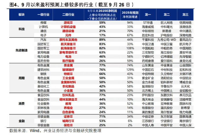 转发兴业证券的数据,哪些行业业绩好一目了然,供大家参考。