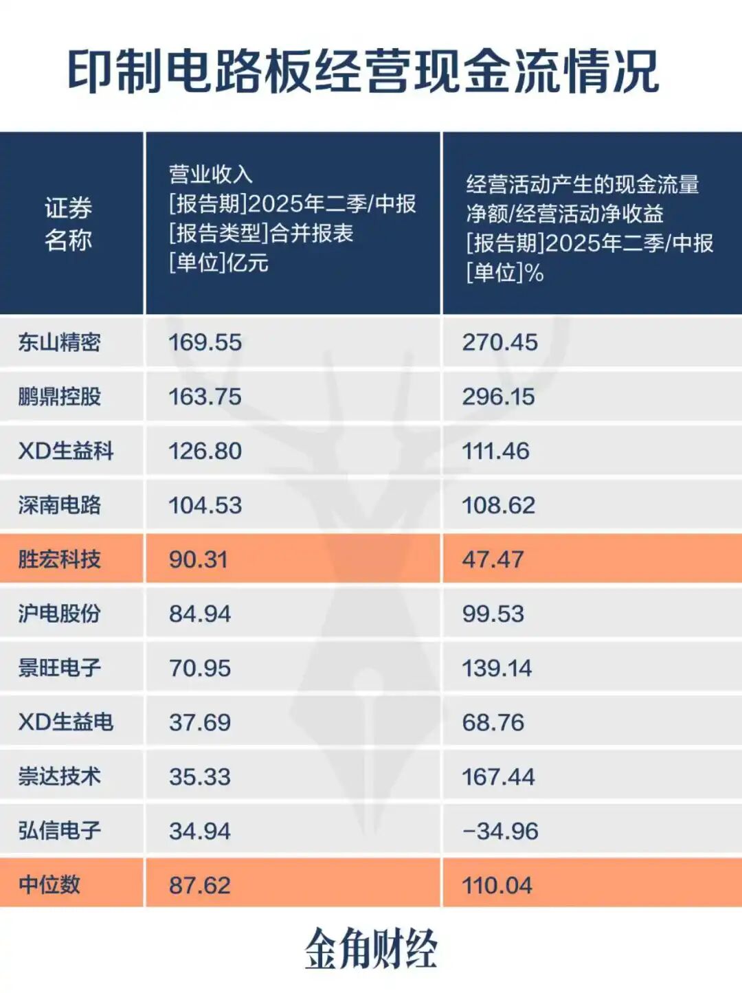 在申万印制电路板行业中,2025年上半年营收前10的公司(头部企业)中,胜宏科技经营现金流/经营活动净收益比例只有不足50%,头部公司的中位数则为110%,营收规模最大的两家公司东山精密和鹏鼎控股这个比例更接近300%。