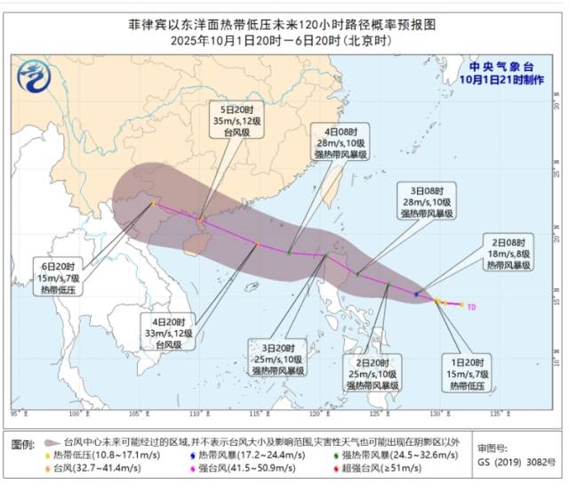 10月1日11时,一个新的热带低压在菲律宾马尼拉偏东方向生成。截至1日20时,该热带低压位于距离菲律宾马尼拉偏东方向约930公里的海上。