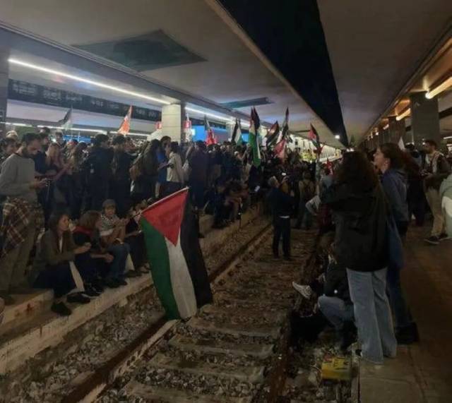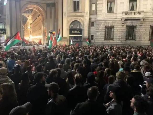 消息传回欧洲,欧洲人彻底愤怒了,即便已经是深夜,很多人高举巴勒斯坦旗帜,走上街头呐喊;在意大利,愤怒更在人们心头燃烧,一些人占领了铁路……
