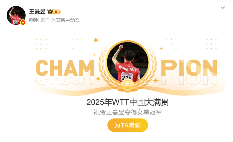 王曼昱4-2战胜孙颖莎夺得冠军,