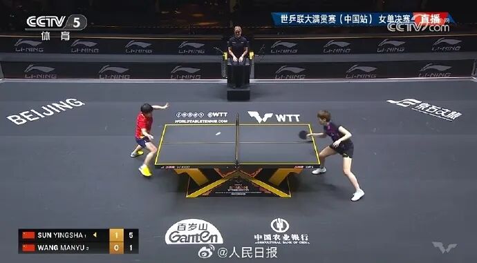 第二局的开局与首局如出一辙,孙颖莎在5比1领先的情况下被王曼昱追至5平。双方战至6平后,王曼昱连得3分,奠定领先优势,并以11比7扳平局分。