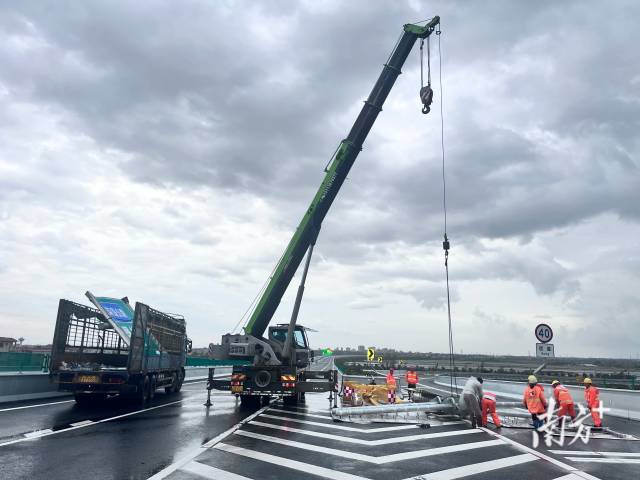 10月5日下午,随着台风登陆后风雨逐步减弱,为尽快恢复道路畅通,渝湛、湛徐、茂湛、包茂、阳茂、乌石港支线、海陵岛大桥动员路政及养护部门共750余人,建立63支抢险清障队,配备挖掘机、吊机、巡查车等抢险车辆313台,迅速前往现场开展清障作业,并逐步有序恢复高速公路通行。