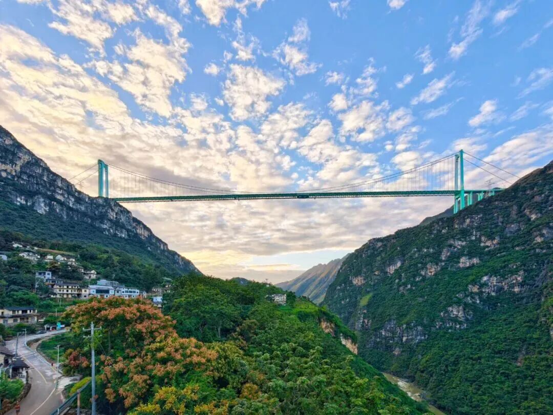 据悉,花江峡谷大桥是一座桥高625米、主跨1420米的悬索桥,连接贵州安顺市关岭县和黔西南州贞丰县两岸,以“世界第一高桥”刷新工程纪录。据介绍,大桥主桥跨径居山区桥梁跨径世界第一、桥梁高度居世界第一,被称为“横竖”都是世界第一。