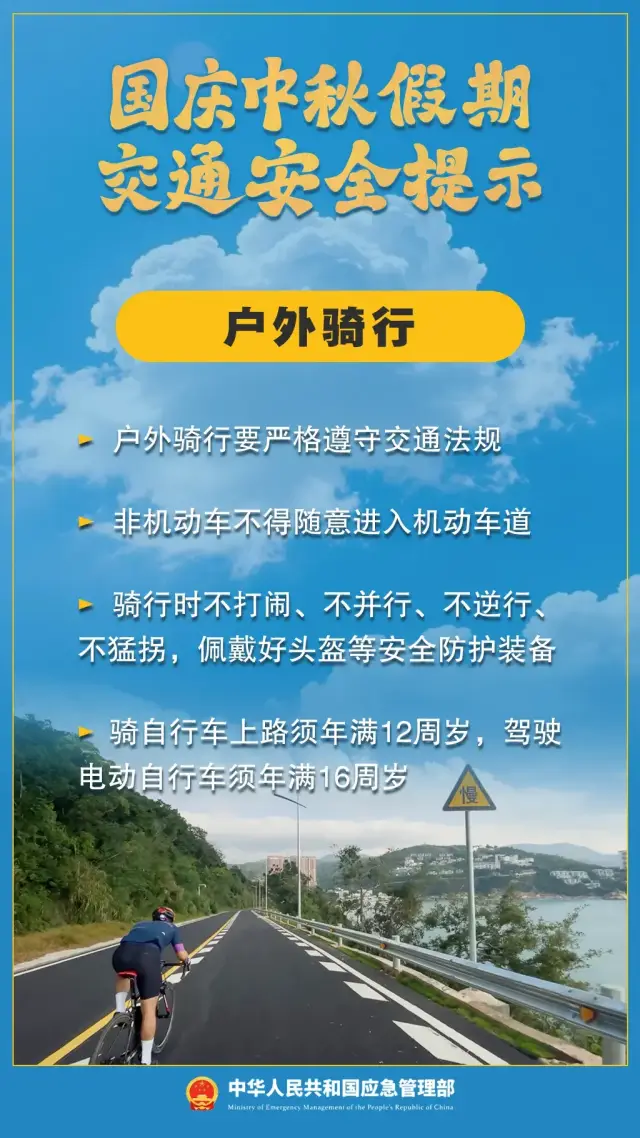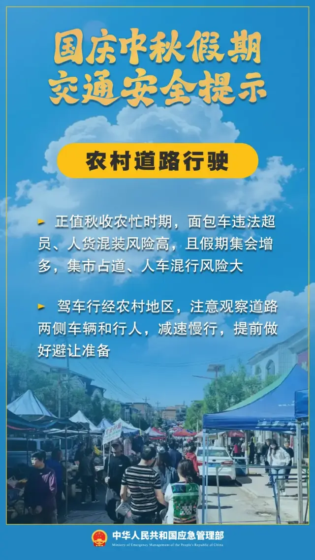 公安部交管局提示广大驾驶人和节日出行群众,返程要提前了解沿途天气和路况,合理规划返程时间、路线,尽量避免安排不熟悉车况、路况的“新手”驾驶人长距离驾车返程。雨天行车,要注意减速慢行,保持安全车距,切勿急打方向、急踩刹车。节假日亲友聚会增多,牢记“开车不喝酒、喝酒不开车”。