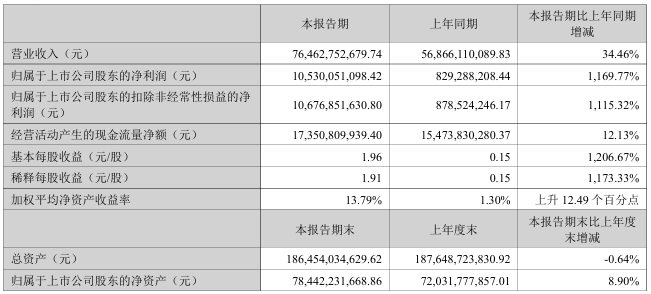 牧原股份2025年上半年实现营业收入764.63亿元,同比增长34.46%;归母净利润105.30亿元,同比暴增1169.77%。