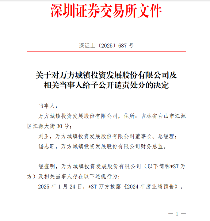 日前,万方城镇投资发展股份有限公司(以下简称“*ST万方”,000638)收到中国证券监督管理委员会(以下简称“中国证监会”)下发的《中国证券监督管理委员会立案告知书》(证监立案字0202025009号),因涉嫌信息披露违法违规,根据《中华人民共和国证券法》《中华人民共和国行政处罚法》等法律法规,中国证监会决定对公司立案。