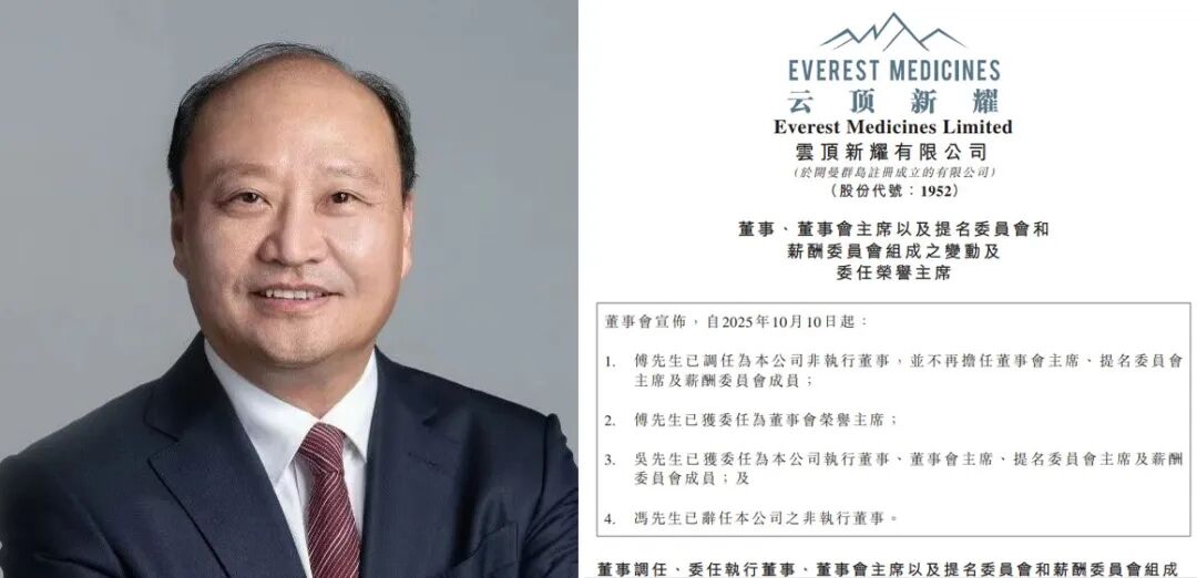 10月10日,总部位于嘉兴的创新药企云顶新耀公告称,吴以芳成为公司新一任执行董事、董事会主席。