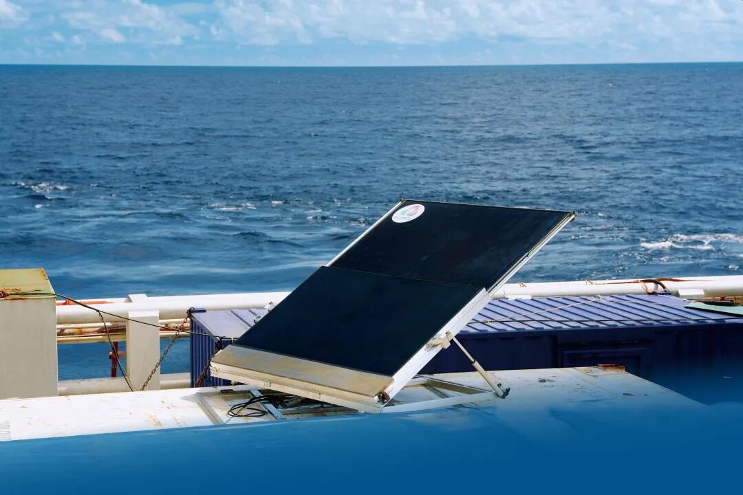 此次“源火”采集面临着特殊的安装挑战。科考船体表面安装空间有限,且严禁对船体进行任何改造。高景太阳能团队提出创新方案,将光伏组件精准安装在船板现有集装箱顶部,既避开了空间局限,又实现了“零改造、高适配”的目标 。针对甲板上集装箱位置固定导致的光照角度问题,团队配备的光伏旋转支架能实时动态调整组件角度,确保最大化提升光能利用率。
