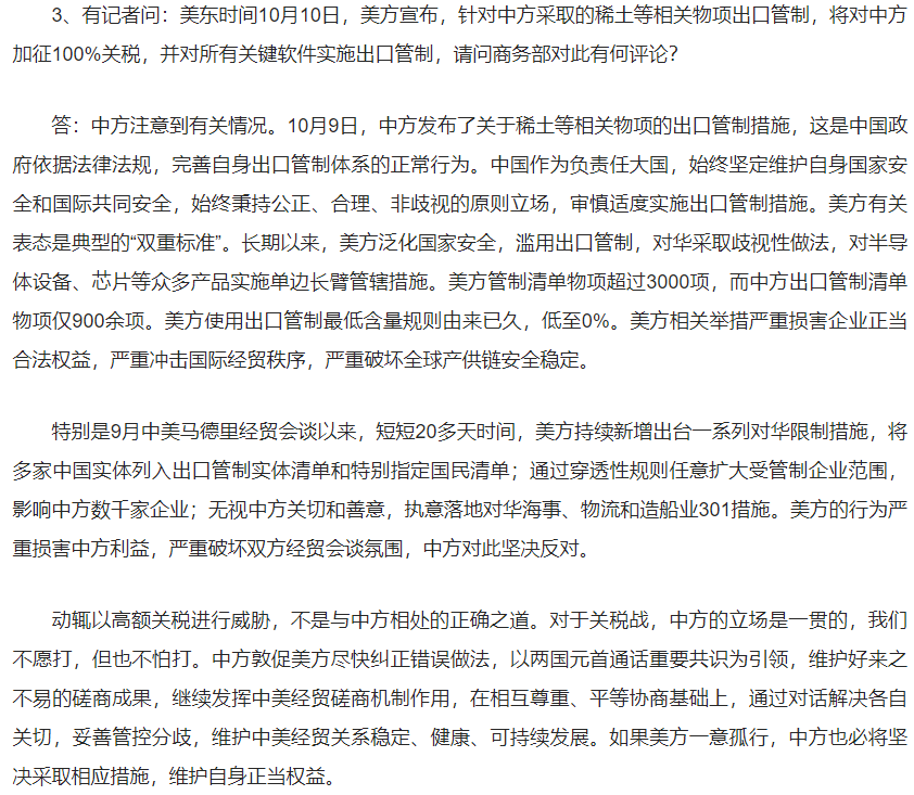 1. 美方宣布将对中方加征100%关税,商务部回应