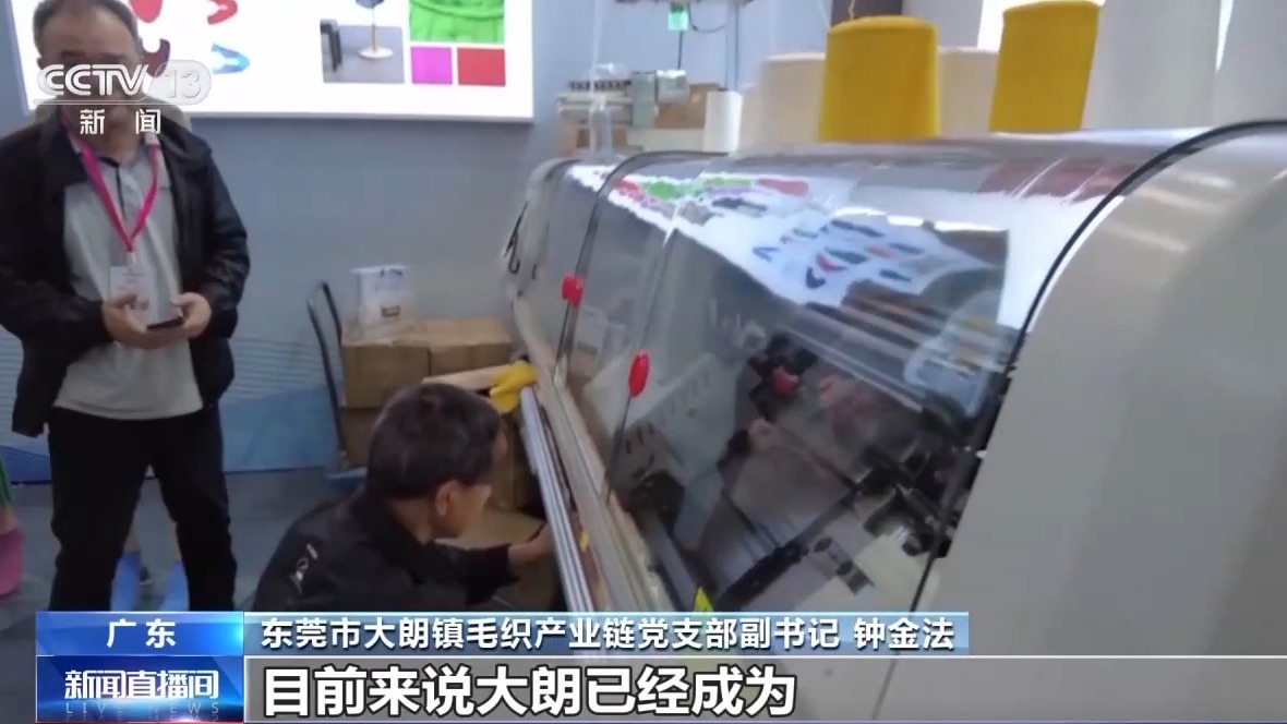 东莞市大朗镇毛织产业链党支部副书记 钟金法:目前来说大朗已经成为全世界使用电脑横机最集中的一个地方。技术提升使得生产效率能够提高大约20%到30%。