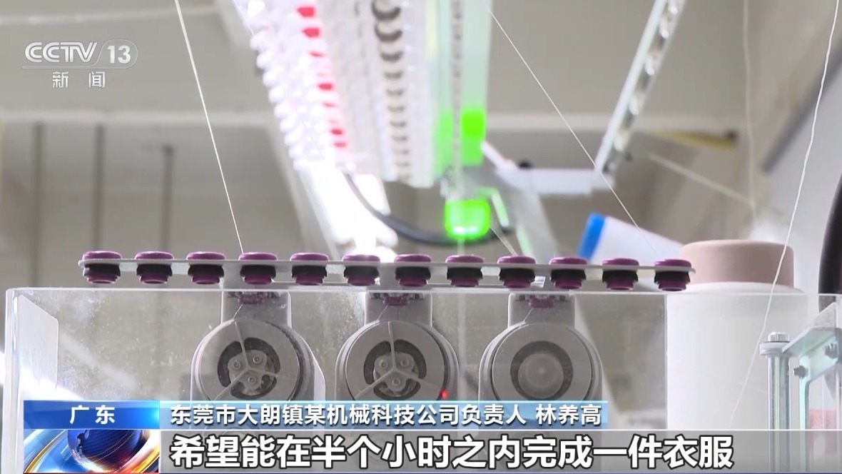 东莞市大朗镇某机械科技公司负责人 林养高:我们生产一件衣服现在大概需要一个小时。未来慢慢往50分钟、40分钟去改进,希望能在半小时之内完成一件衣服。