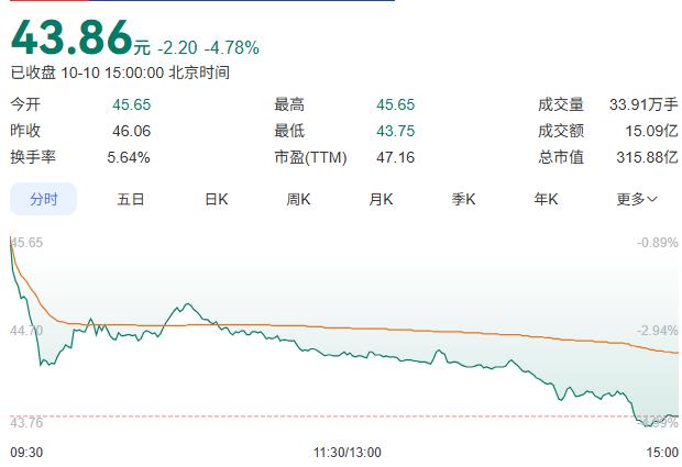 然而,这份判决并未对两人名下的财产分割事宜给出明确结果,法院表示将对财产分割部分继续审理,再行裁判。此时,打开股票交易软件,神州数码的股价停留在43.86元,总市值显示为315.88亿元。