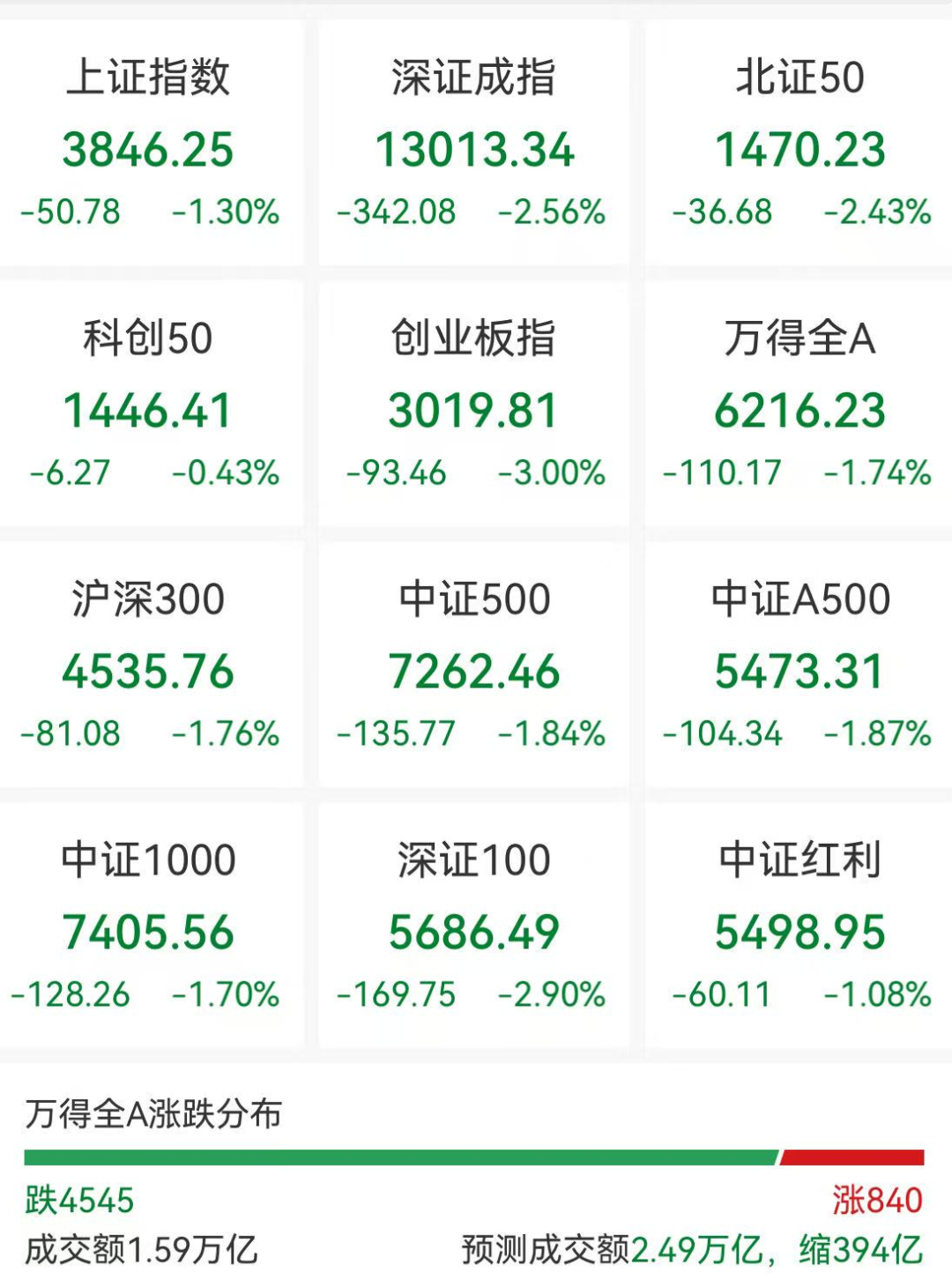 10月13日,市场震荡回升,三大指数跌幅收窄。截至午间收盘,沪指跌1.30%,深成指跌2.56%,创业板指跌3%。全市场半日成交额1.59万亿。板块方面,稀土永磁、半导体等板块涨幅居前,机器人、消费电子等板块跌幅居前。