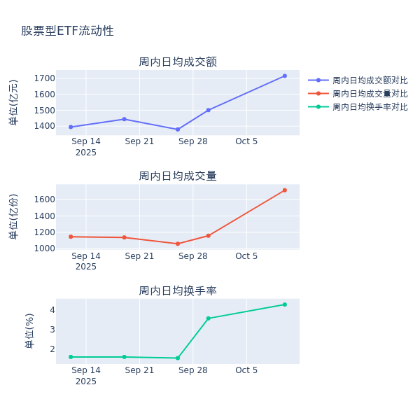 流动性方面,上周股票型ETF市场日均成交额增加14.3%,日均成交量增加48.1%,换手率增加0.71%。