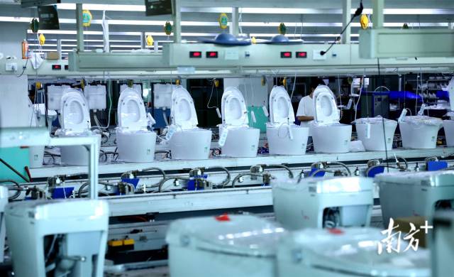 在“中国瓷都”潮州,智能马桶自动化生产线正高速运转。陈锦煌 摄