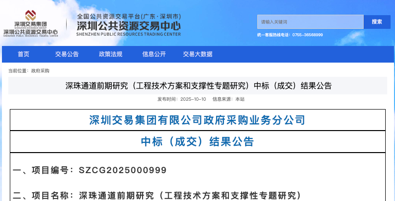 今年3月,广东省发改委公布《2025年广东省发展和改革委员会部门预算》,明确将“深珠通道前期研究(跨珠江口交通需求与通道布局适配性研究)”纳入支出预算。同时, 2025年深圳市交通运输工作会议上也提出,今年深圳将大力推进深珠通道前期工作 。