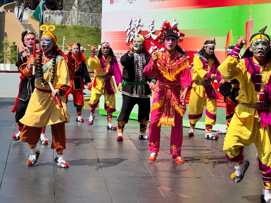 世博园内,广东省贸促会组织举办广东活动周开幕式、多场商务推广活动及20余场文艺表演,包括英歌舞、粤剧、醒狮等非遗民俗精品演出,每天吸引来自世界各地超1.2万人排队入中国馆参观。