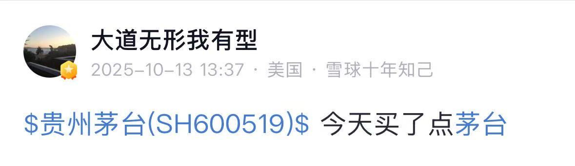 10月13日,知名投资人段永平在社交平台上(ID:大道无形我有型)发声:“今天买了点茅台!”