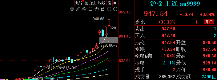 早盘贵金属期货主力合约涨幅持续扩大,沪银期货主力合约日内涨幅扩大至6%,续创新高;沪金涨幅为3.17%,现报943.38元/克,均再创历史新高。此外现货黄金持续走高站上4140美元/盎司,再创新高。
