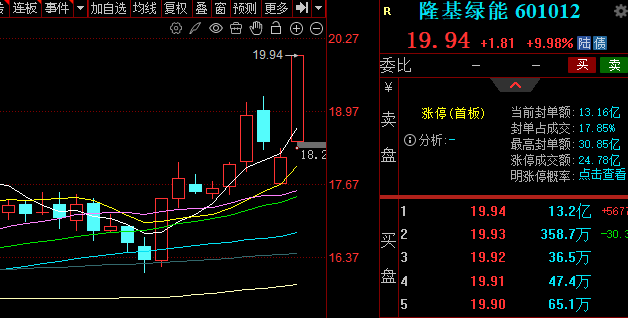 光伏概念震荡反弹,隆基绿能一度涨停,市值回到1500亿元。东方日升、爱旭股份、TCL中环等跟涨。