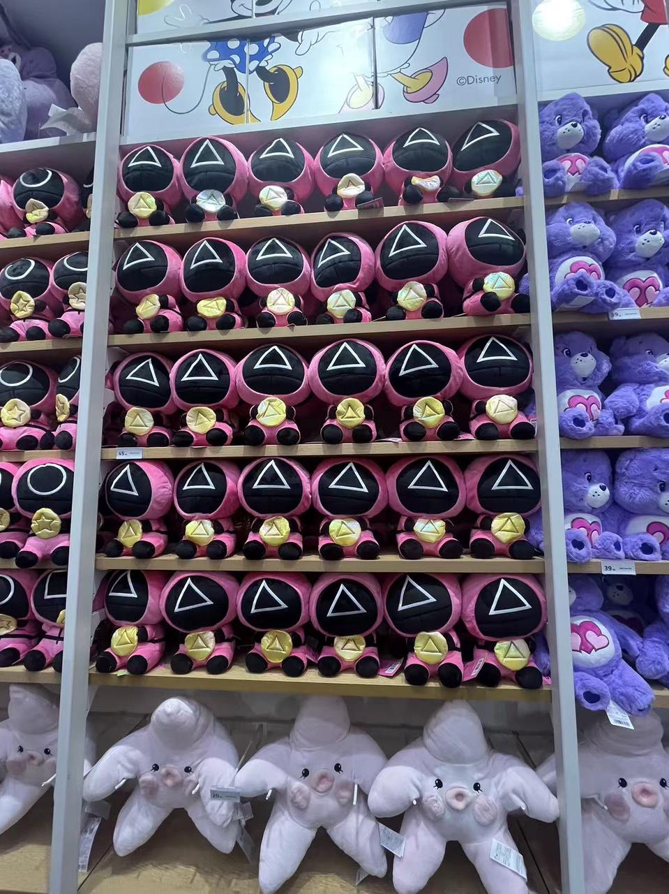 沙特名创优品里售卖的《鱿鱼游戏》中“神秘人”形象玩偶。