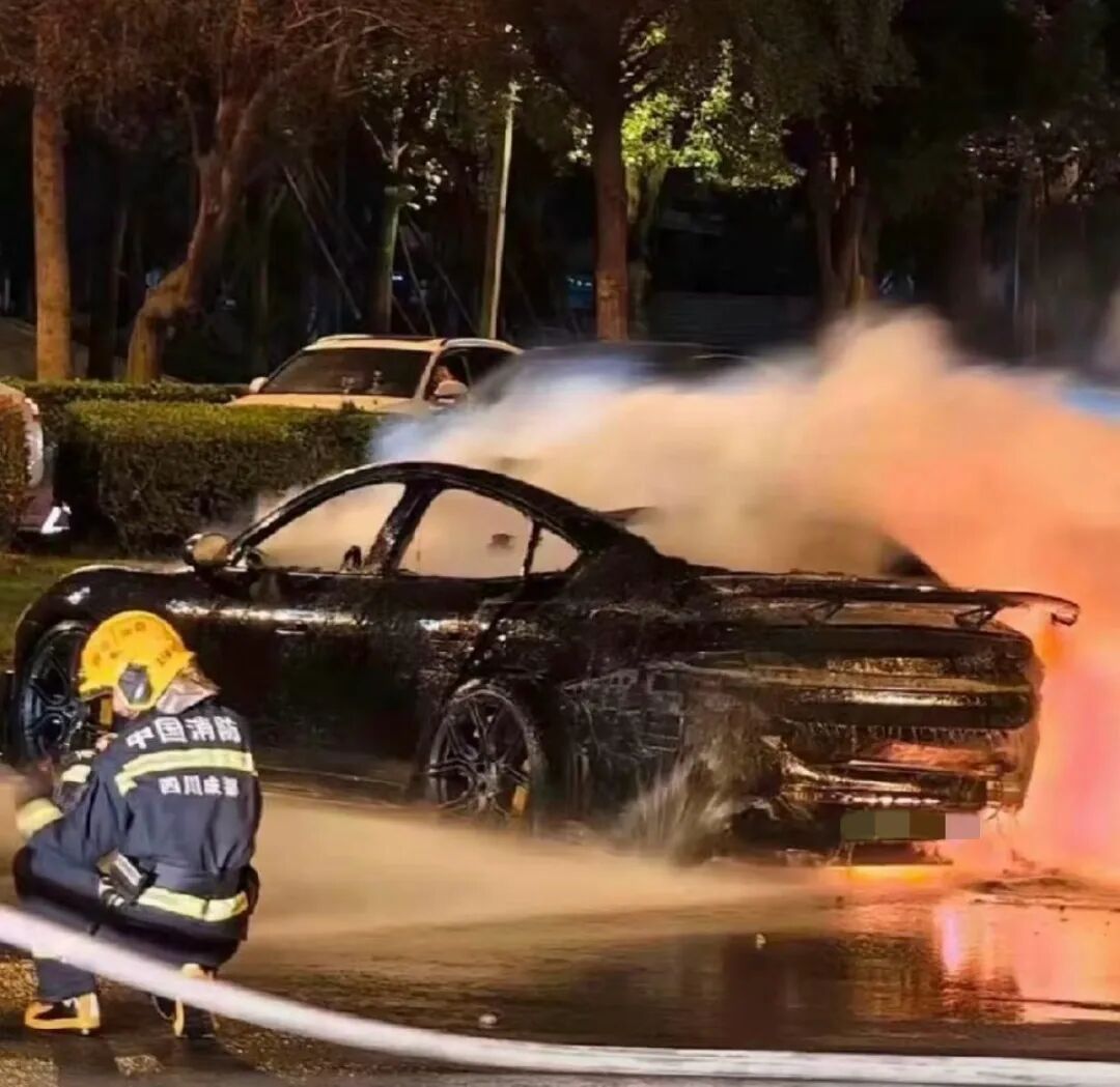 与此同时,车内已经出现明显爆炸声,众人只能后退。后来有人拿来灭火器灭火,但无法阻止车辆燃烧爆炸。