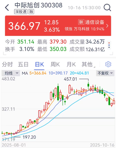 一个多月过去了,涨疯了的“小登股”最近一个月股价在高位上蹿下跳,寒武纪(688256)高点出现在8月28日,1595.88元,其后股价涨少跌多,下降通道明显。中际旭创(300308)最近两个月盘了个圆顶。