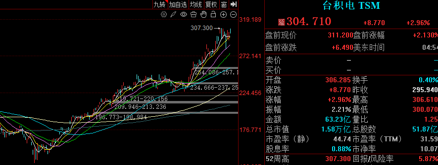 摩根士丹利:将台积电目标价从1388新台币上调至1588新台币。
