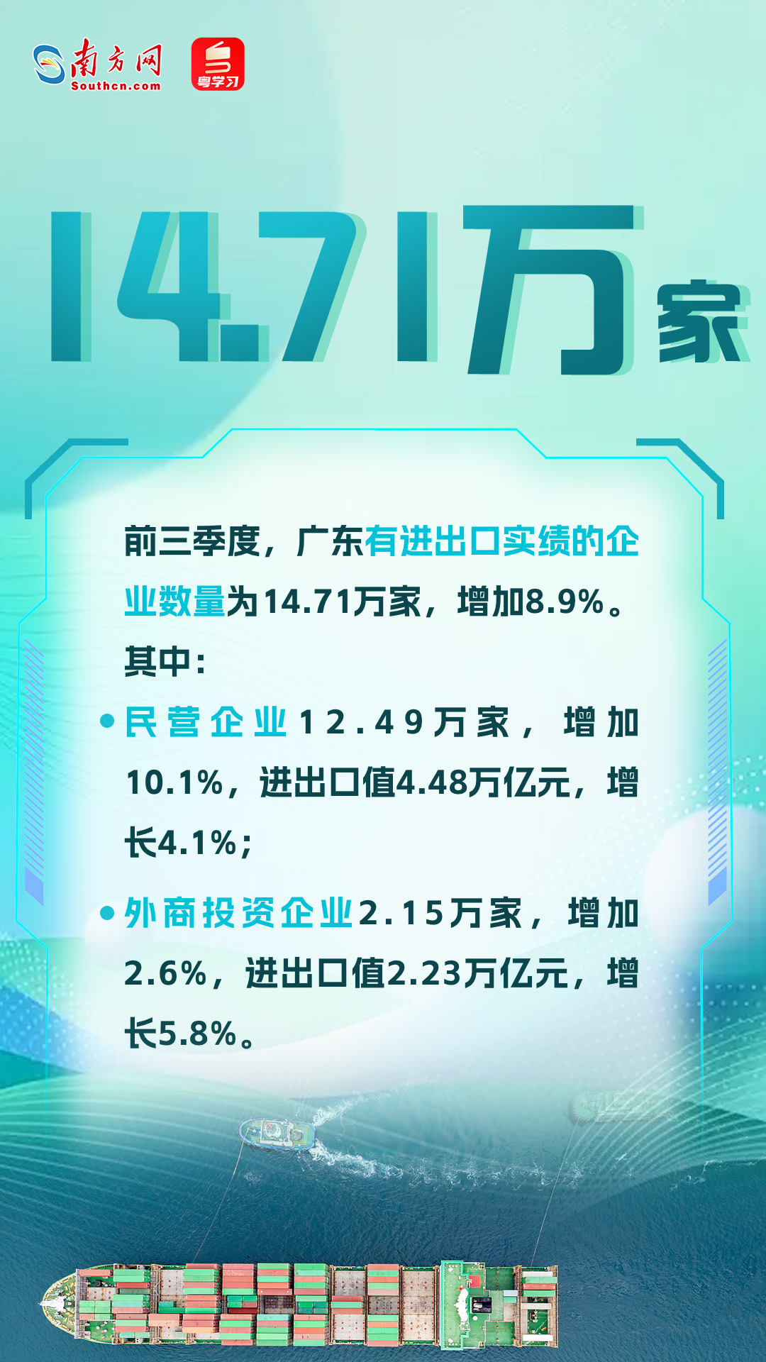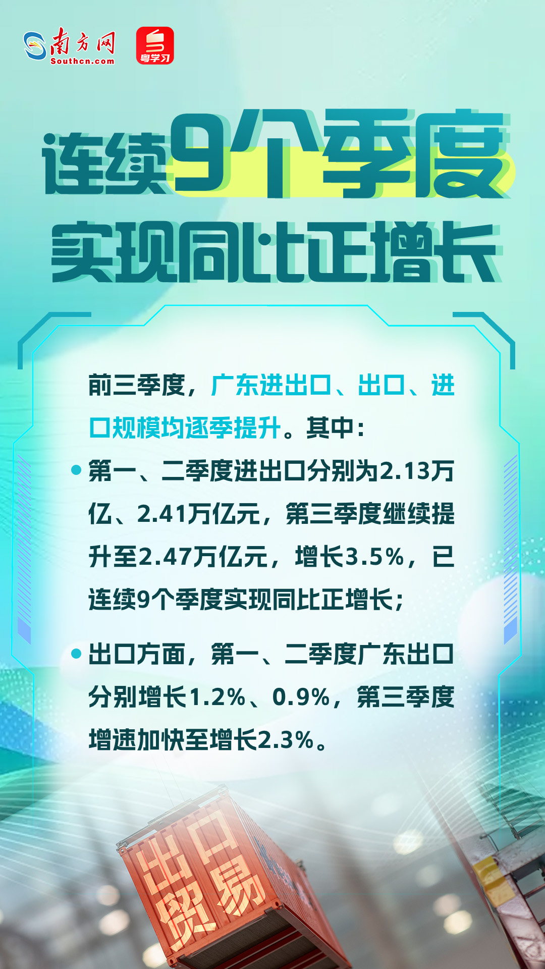 今年以来,广东经济运行稳中有进,高质量发展持续推进。广东外贸在复杂的外部环境下顶压前行,延续了量稳质提的发展势头,展现出较强的韧性与活力。前三季度,外贸第一大省广东交出了一份亮点纷呈的外贸成绩单,其中哪些数据最亮眼?一组海报告诉你↓↓↓