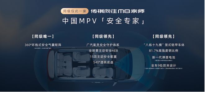 无论家用还是商用,安全是“底线”,更是豪华的基石。广汽始终坚持安全造车,依托自研的“星灵安全守护体系”,为向往M8宗师构建起全维度安全防线。