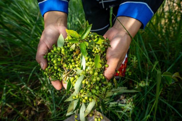不起眼的山苍子进入邓春明的视野。外地人进村收购山苍子,价格高达6元/斤,收购后运往湖南作为餐馆做菜的佐料。被民间称为“野胡椒”的山苍子深受网红餐馆热捧,“做酸菜鱼撒一把山苍子,很香!”
